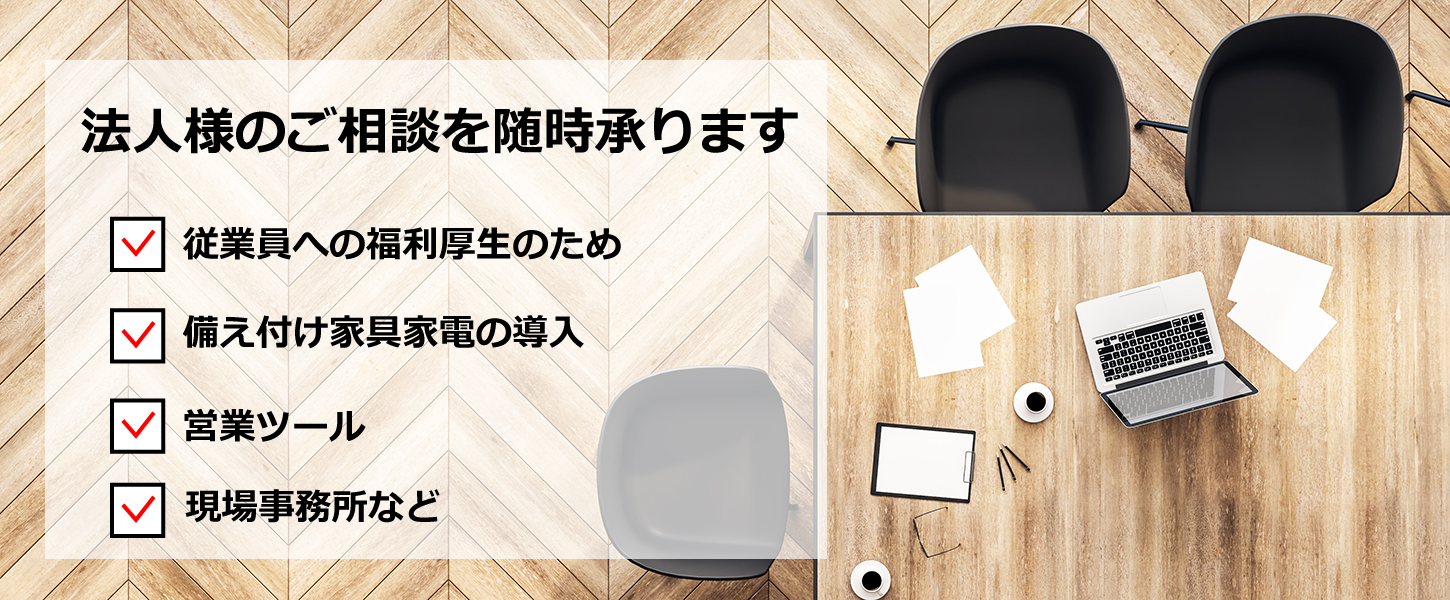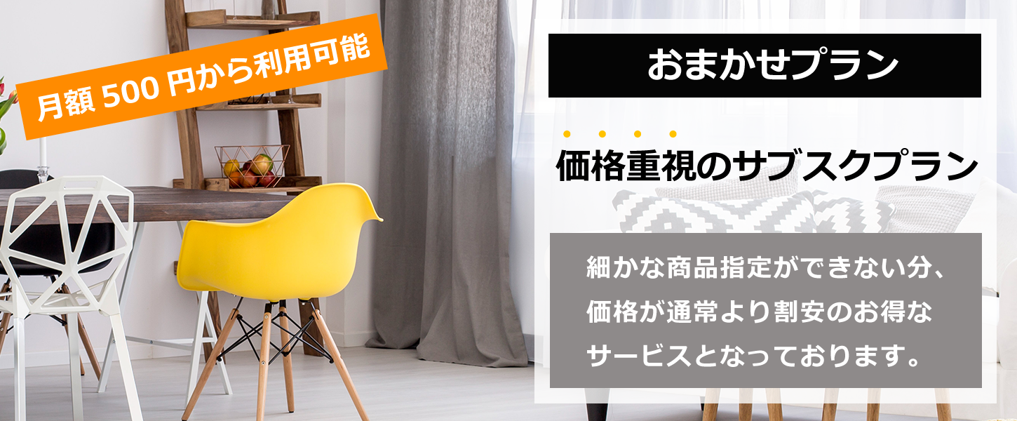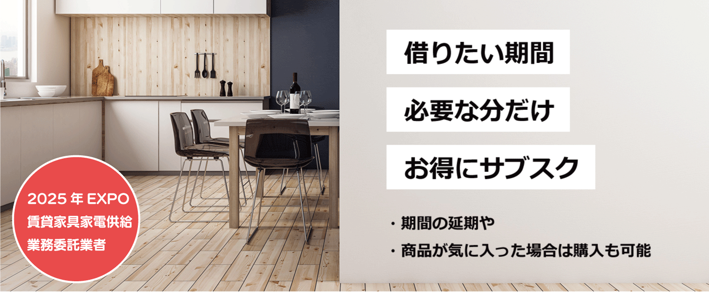 気に入った家具や家電は、サブスク後に差額をお支払いすれば購入も可能なサブスク・レンタルサービスです。サービス終了後に購入ご希望の際はこちらよりご連絡ください。